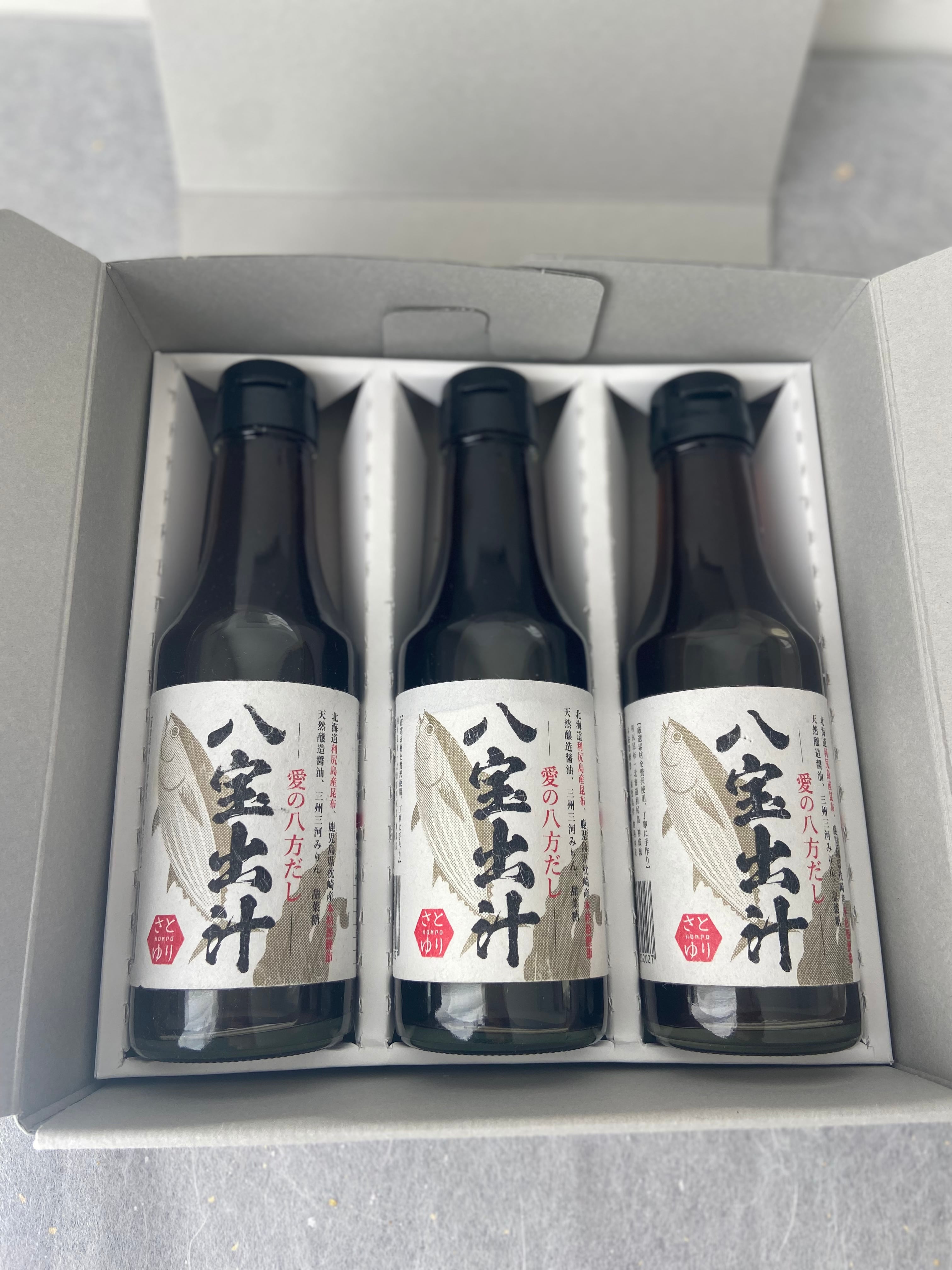 ギフトボックスに入った八宝出汁3本セットです。 12月よりご注文開始となります。