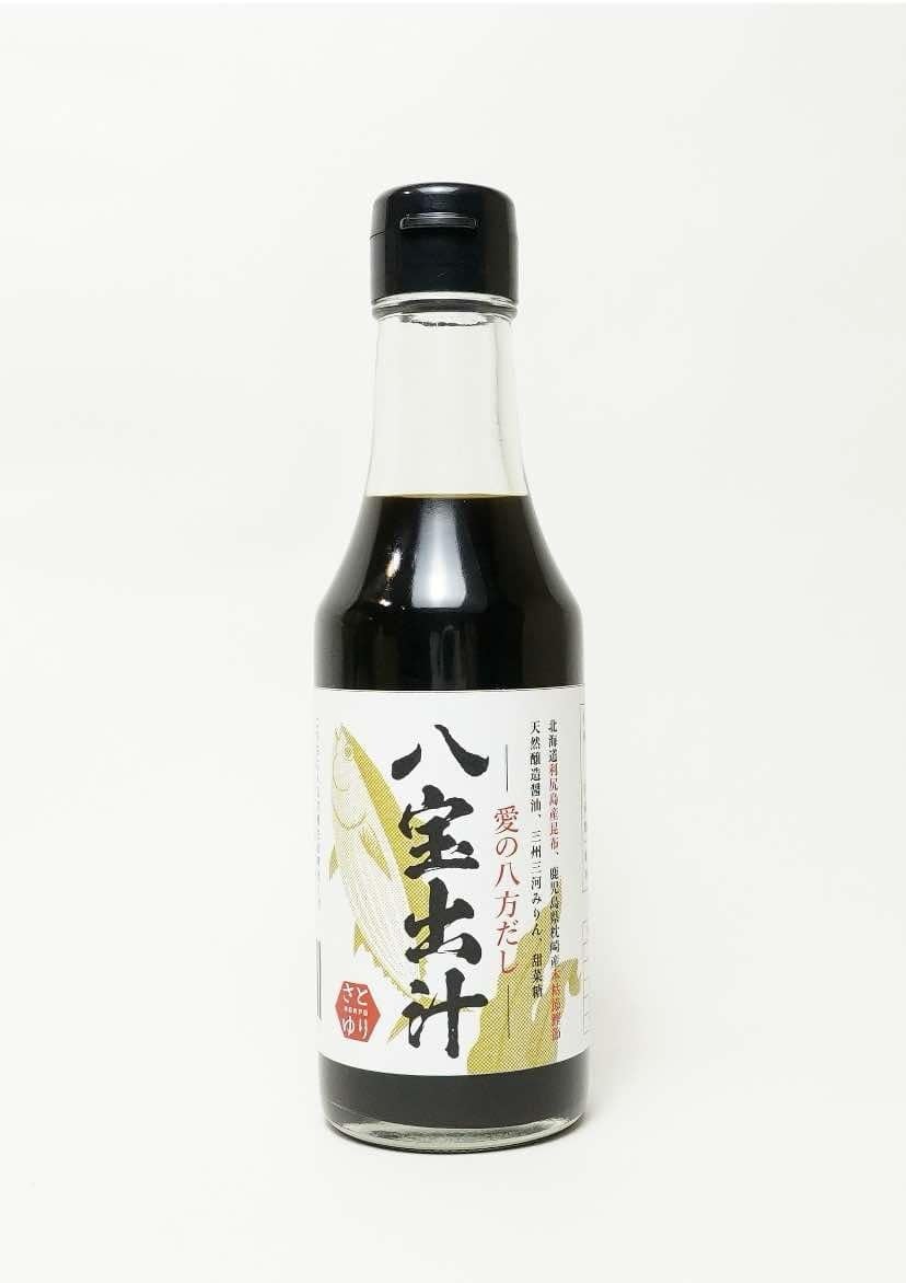 5つの厳選素材と3つの愛を合わせた『八つの宝』から生まれた、究極のお出汁です。